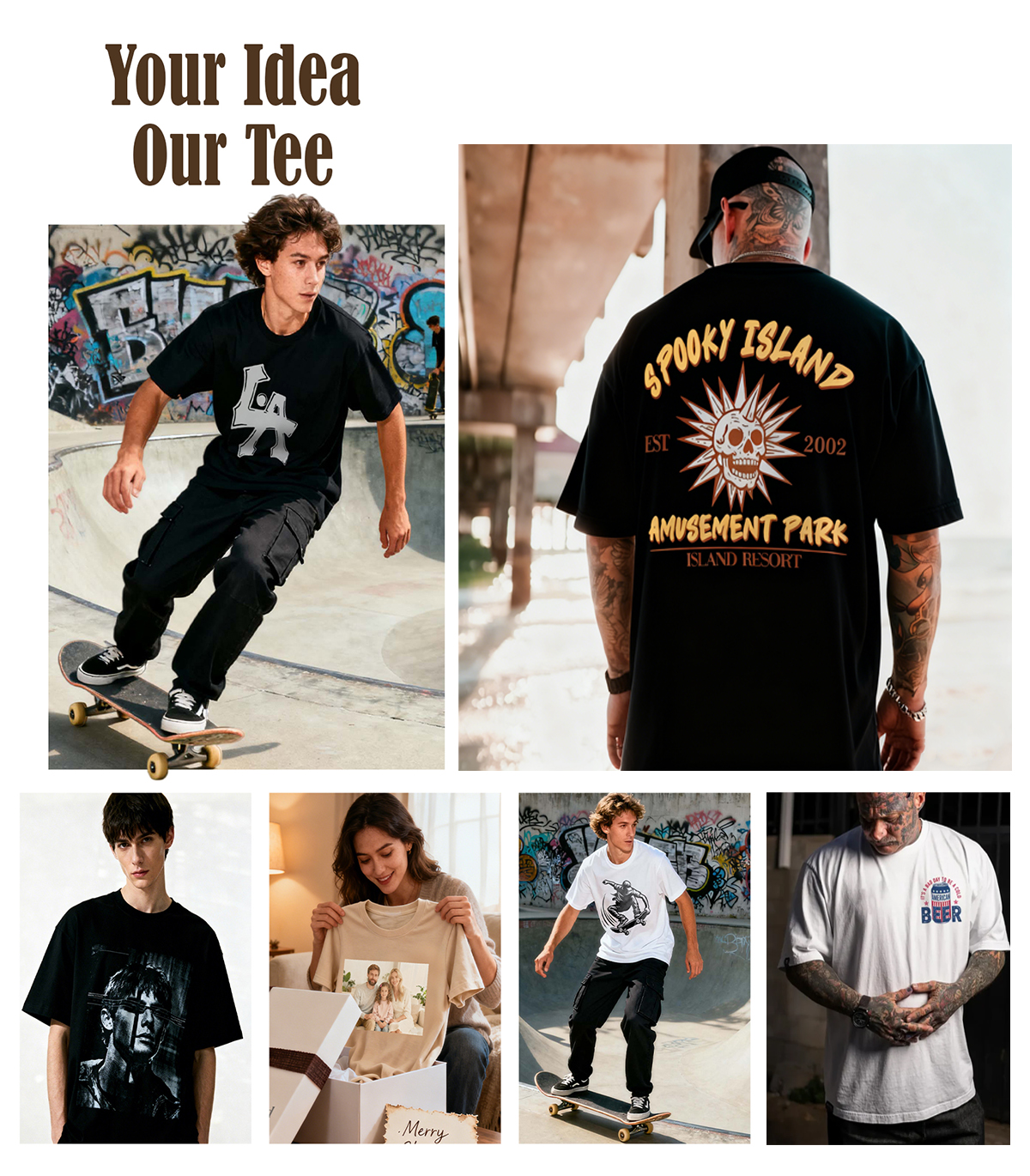 From patterns and text to colors, create a unique short-sleeved shirt that's completely yours. Record your passions and express your attitude. Say no to wearing the same thing as someone else; define your style.